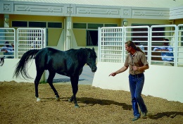 ....wie Hans-Jürgen Neuhauser in den Vereinigten Arabischen Emiraten mit zwei sehr wertvollen aber extrem aggressiven Deckhengsten des Scheichs von Sharjah arbeitet.